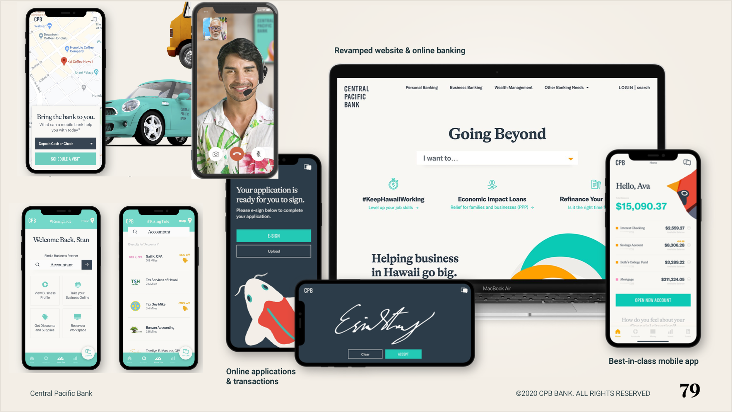 As the Senior Product Strategist, I crafted a vision for how Central Pacific Bank’s (CPB) new branding would come to life through its digital channels, and guided the design of its first mobile app. This led to the creation of the highest rated banking app in Hawaii.